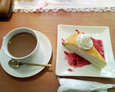 コーヒーは、メイドさんがお砂糖やミルクをまぜまぜしてくれる方式でしたよ。
