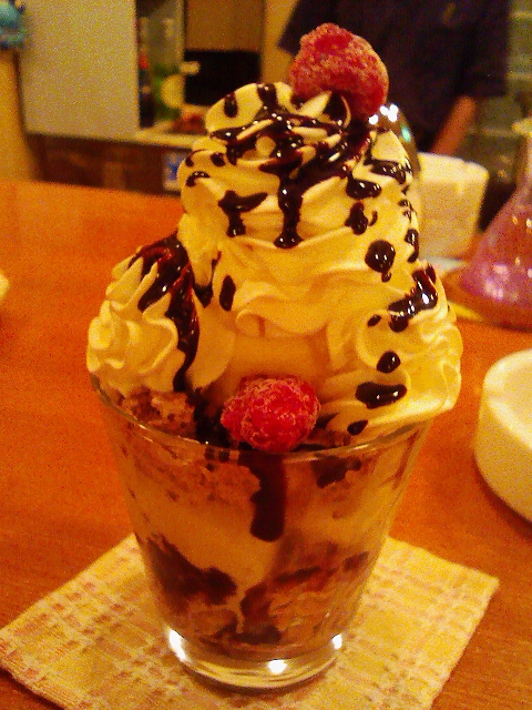 9月の中旬、のばらさんのアイディアから1日限りで出た日替わり限定スウィーツ。ガトーショコラを砕いて、生クリームと混ぜた合わせたものが入っている。とてもまろやかなガトーショコラをパフェにするという発想的なパフェは、実に絶妙な一品だった。