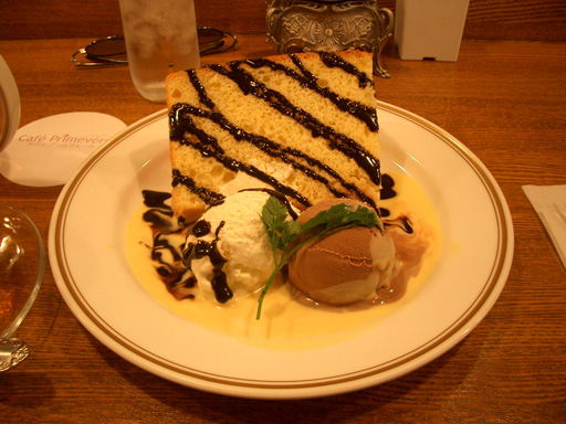 シフォンケーキ(チョコアイス&チョコソース)のドリンクセット(紅茶・レモン)