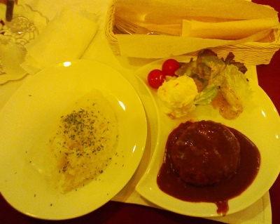 フードセット(フード+ケーキ+ドリンク)を頼み、ヴィクトリアンハンバーグ。