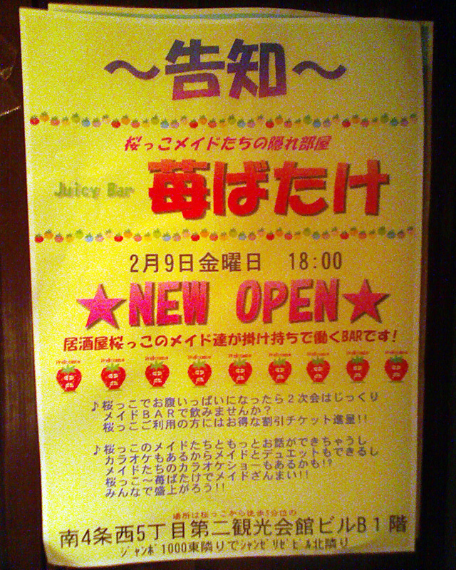 このお店は桜っこのメイドさんが掛け持ちで営業している,メイドバーです.システムなどが結構不透明だったので,その辺を重点的に聞いてきました.