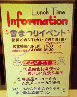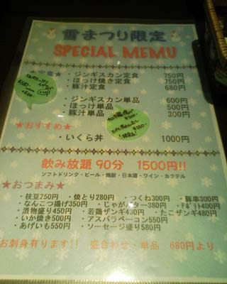 メニューも雪祭り仕様だそうで,居酒屋タイムのメニューなんかもあったりしました.