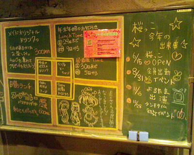 ボードにも「桜っこ 今年の出来事」や「年末年始の営業時間のお知らせ」,「ご主人さま,おじょうさま よいお年を・・・」って年の瀬を感じさせるような感じだったのでまなさんに「1枚撮らせてください!」とお願いし,撮らせてもらうことに.