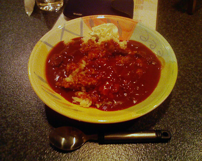 ハヤシライスに生クリーム少したらして食べるというのがあるが、その代わりにホイップクリームを使った感じだ。最初は少し驚いたけど、なかなか行けた。