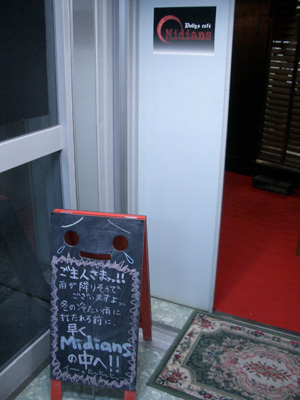 こちらもコンセプト志向のメイドカフェです。Midiansとは「夜魔」のことで、吸血鬼とか、フリークス(魔物)、ナイトメアなどを指し、「日の光には縁の無い存在」といったような意味で使われているのだとか。