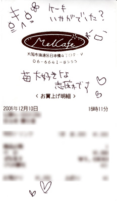 メイドさんがレシートにメッセージを書いてくれる!