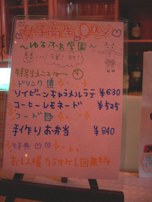 で、女子高生DAYの特別メニューはこちら。