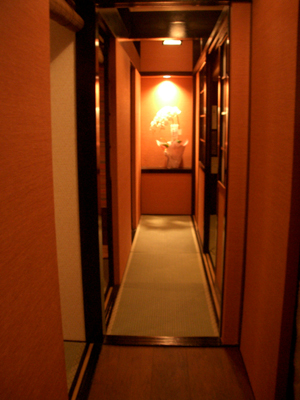 この通路で、今回施術担当してくれたかなさんが三つ指をついて(←ここ重要!!)、おかえりなさいませと一言。