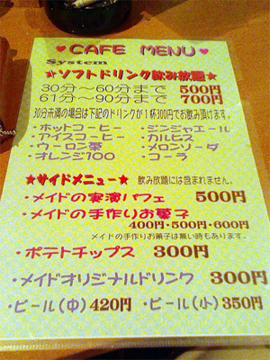 そのほか、メニューには表記されていませんが、メイドオリジナルドリンクもお願いすれば出せるそうです。